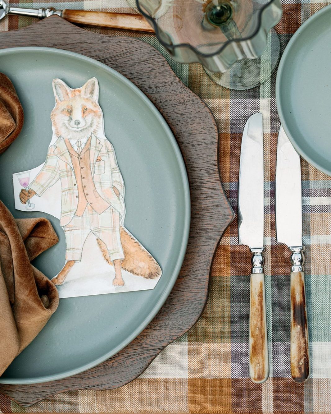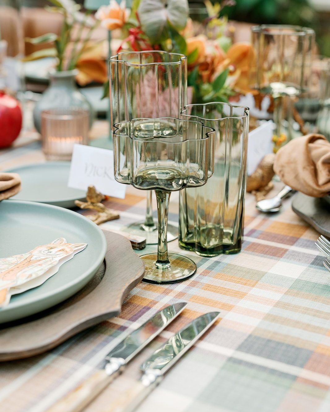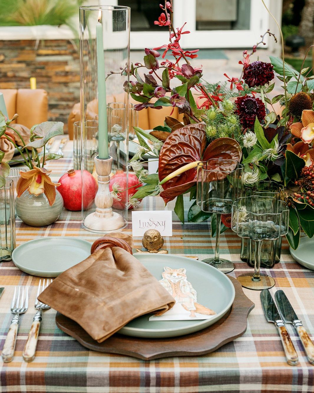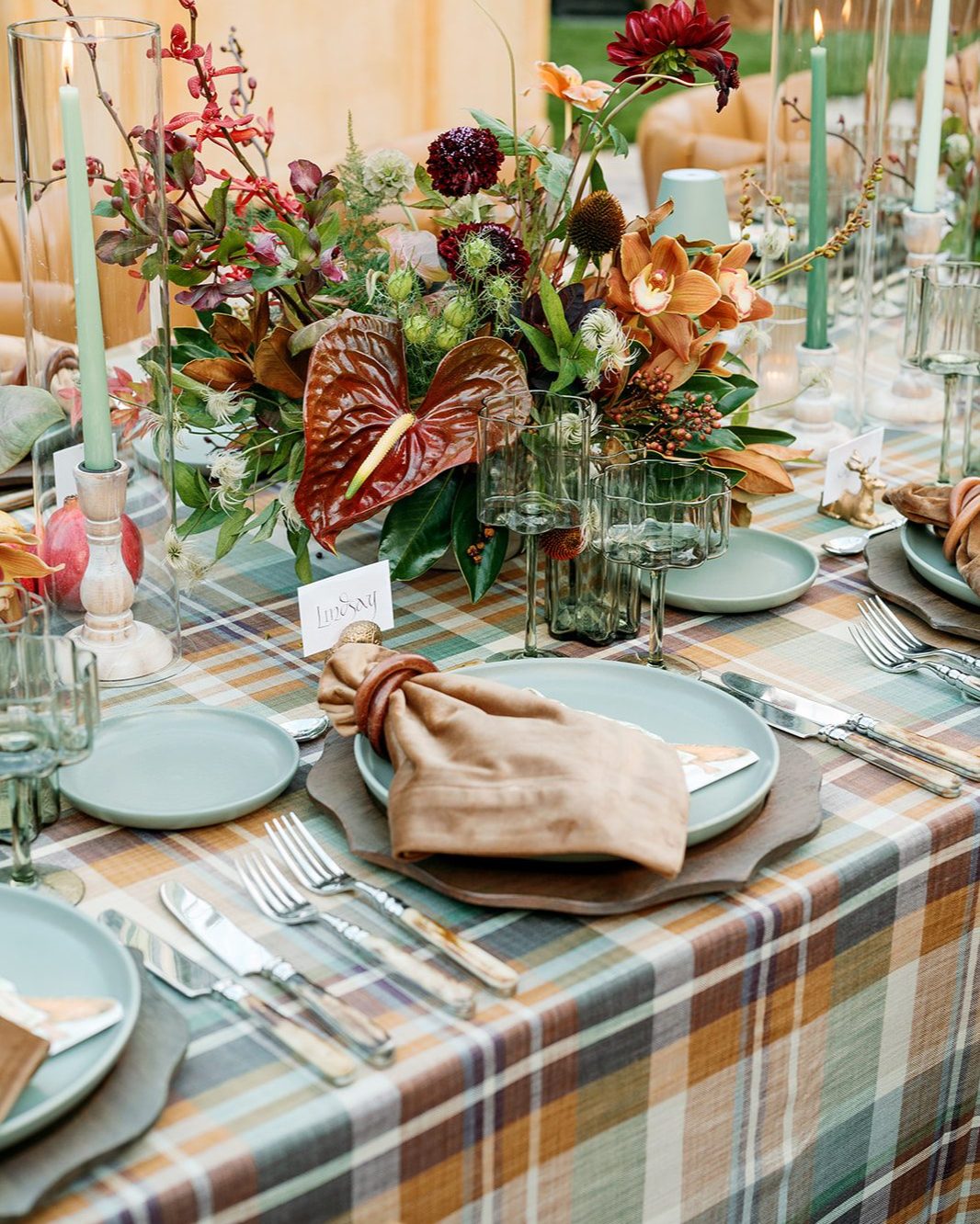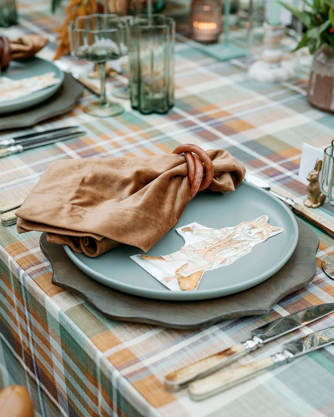 Our Multi Echo linen, velvet napkins, woodland details, and jewel-toned florals are making a very strong case for trading classic red + green for warm checks and storybook charm this season.
