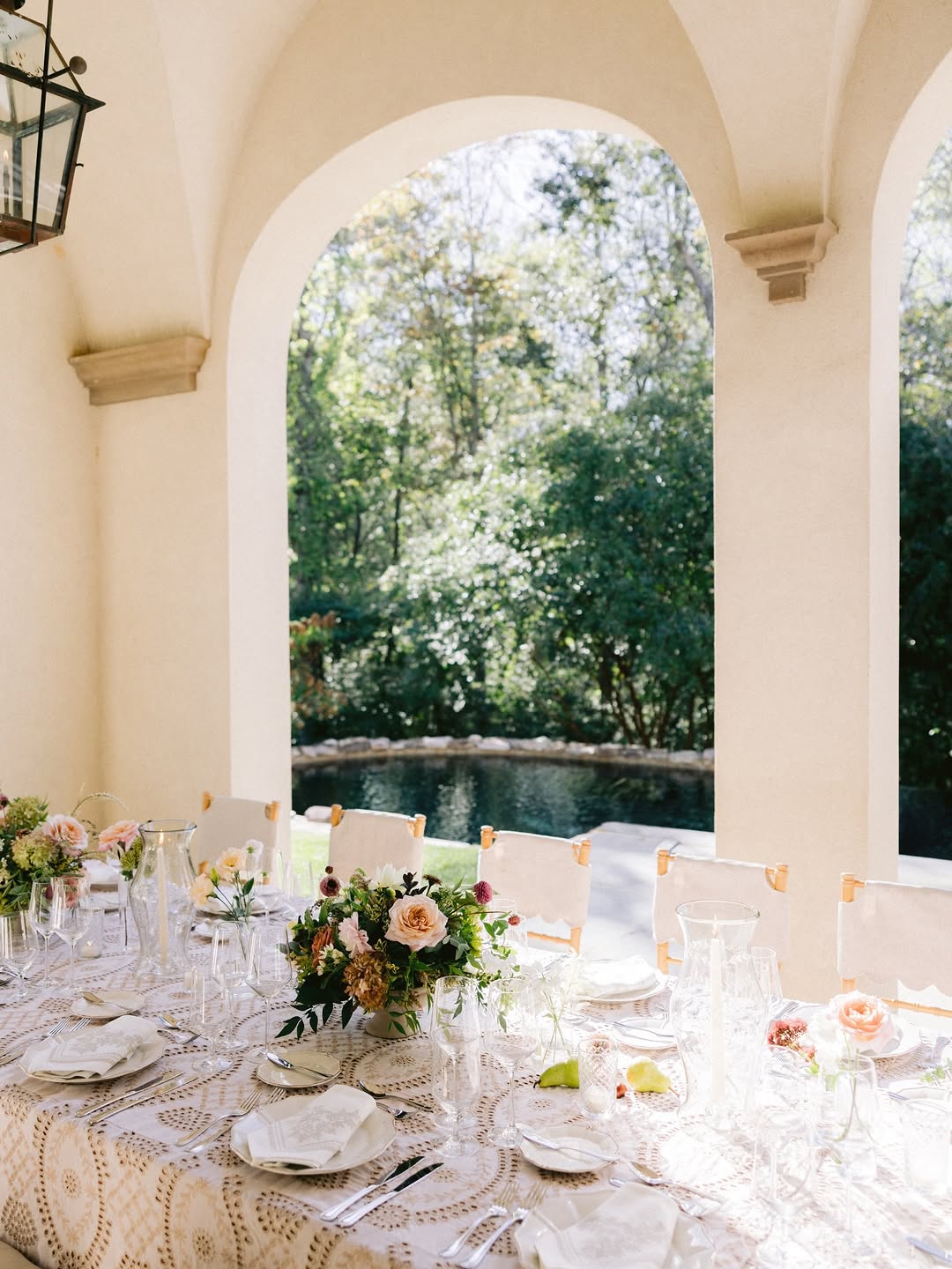 Estate tables are for lush florals, pretty views, and your favorite people 🍷🍇🌸