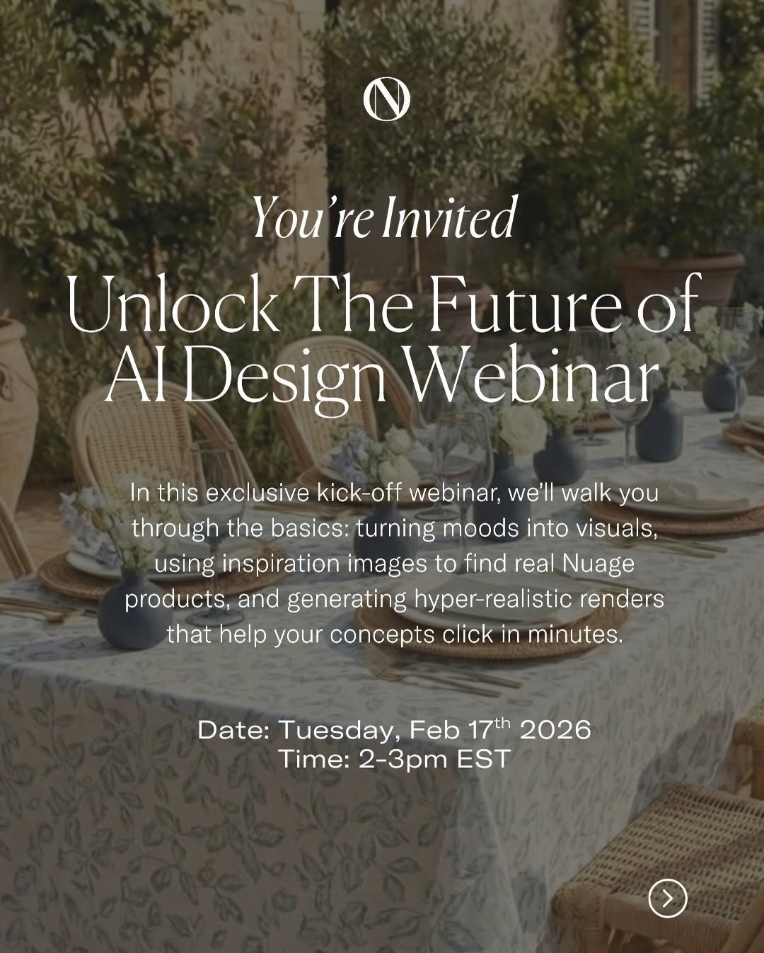 We’ll walk you through the basics: turning moods into visuals, using inspiration images to find real Nuage products, and generating hyper-realistic renders that help your concepts click in minutes.