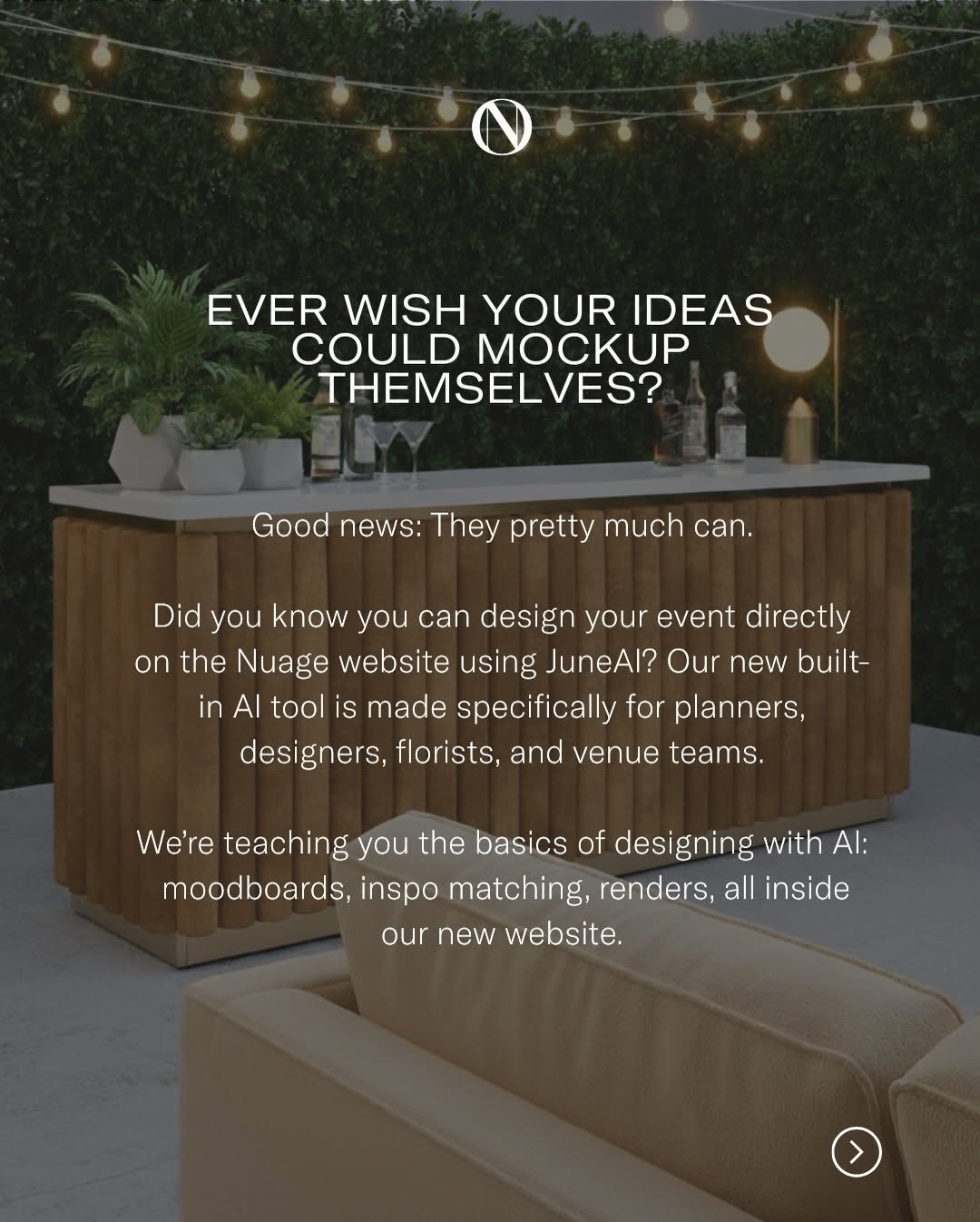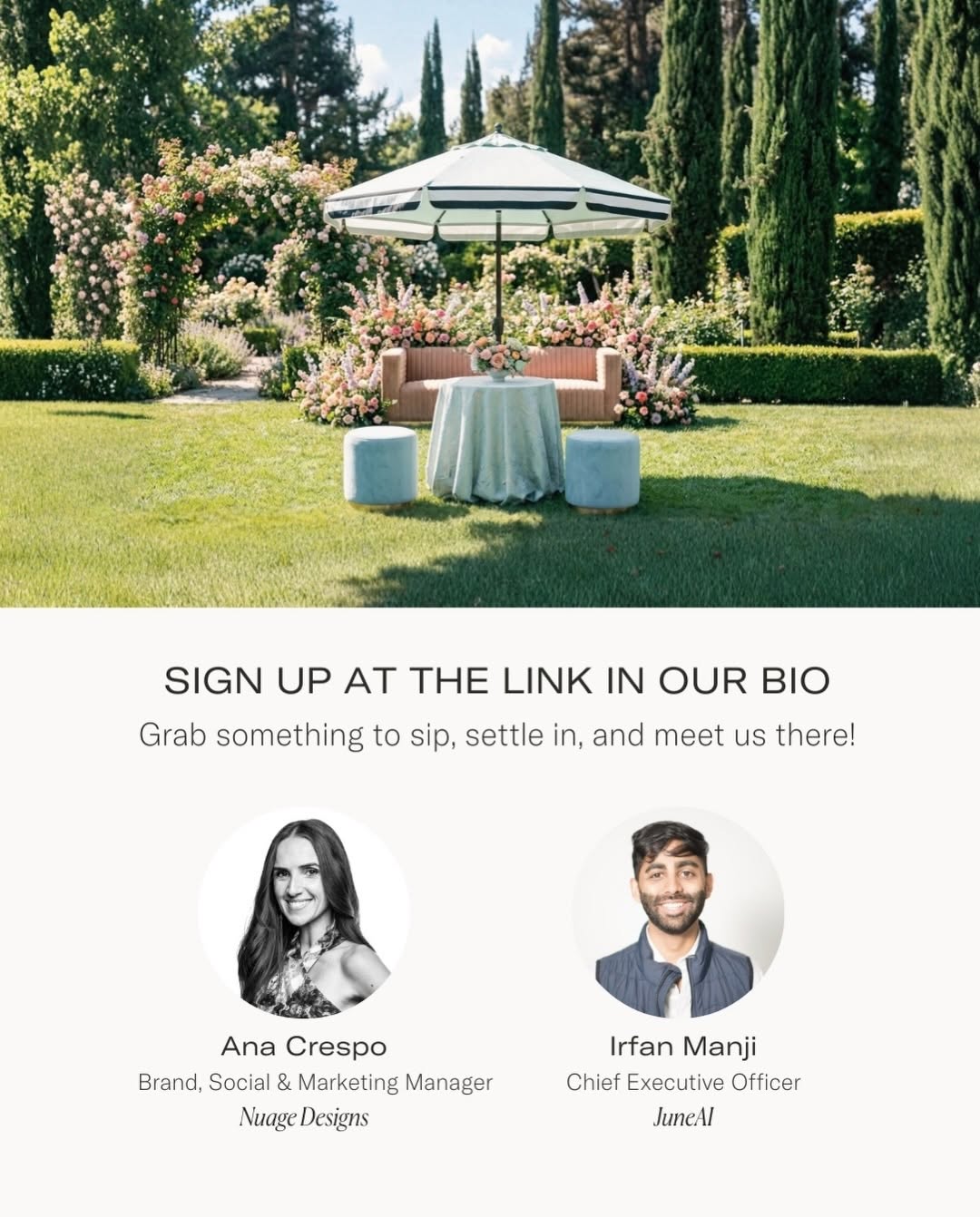 We’re hosting a live intro webinar with Irfan Manji, Founder & CEO of JuneAI, to introduce you to our new AI design tools baked right into the Nuage website (sign up link in our bio!).